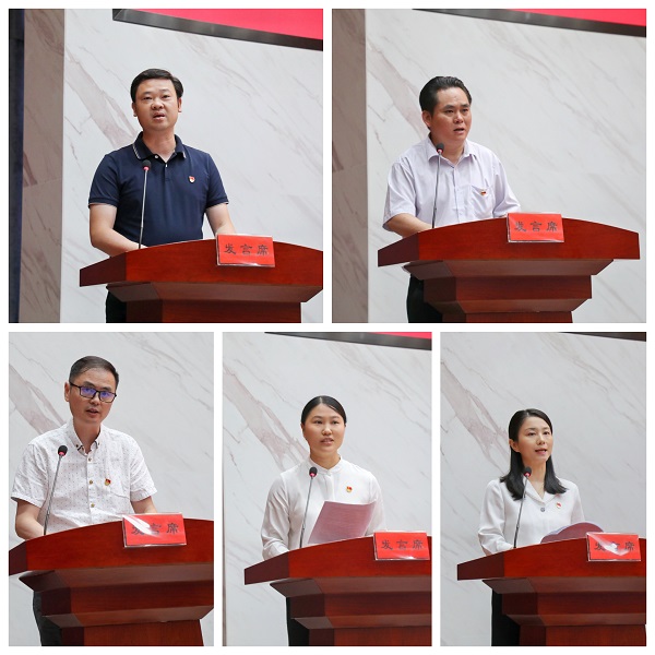 在工作交流阶段,二级党委书记代表计算机学院党委书记刘立勇、教师党员代表马克思主义学院教授贺汉魂、机关党支部书记代表人事处党支部书记何培森、教师党支部书记代表体育学院体育教育专业党支部书记丁小芬、学生党支部书记代表物理与化学学院学生党支部书记曾琳娜先后作典型发言。