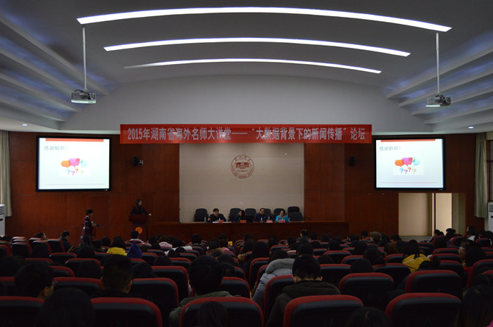 12月8日至9日,2015湖南省海外名师大讲堂项目——“大数据时代的新闻传播”论坛在beat365顺利举行。活动分三个阶段进行,包括两堂讲座和一个专业建设咨询会。