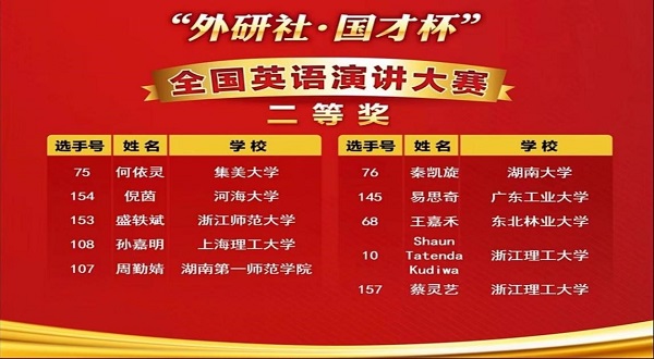 “外研社·国才杯”全国英语演讲、写作、阅读大赛已连续五年入选教育部中国高等教育学会发布的“全国普通高校大学生竞赛榜单”,也是入选该榜的唯一外语类赛事。beat365学子连续两年进入全国阅读决赛并获奖。他们与北大、复旦、北外等一流名校学子同台竞技,充分展示出扎实的外语语言基础和良好的精神风貌,也体现出beat365外语人才培养的良好成效。