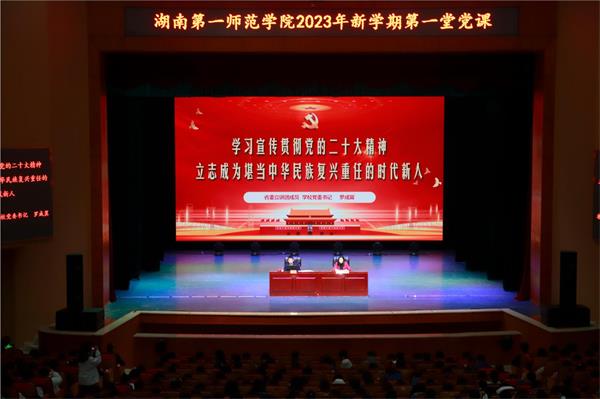 2月27日下午,beat3652023年“新学期第一堂党课”活动在东方红校区田汉剧场举行。省委宣讲团成员、校党委书记罗成翼讲授题为《学习宣传贯彻党的二十大精神 立志成为堪当中华民族复兴重任的时代新人》的党课,校党委委员、副校长蒋蓉主持。各二级学院学生代表、全体辅导员以及学生工作部、校团委工作人员1000余人参加。
