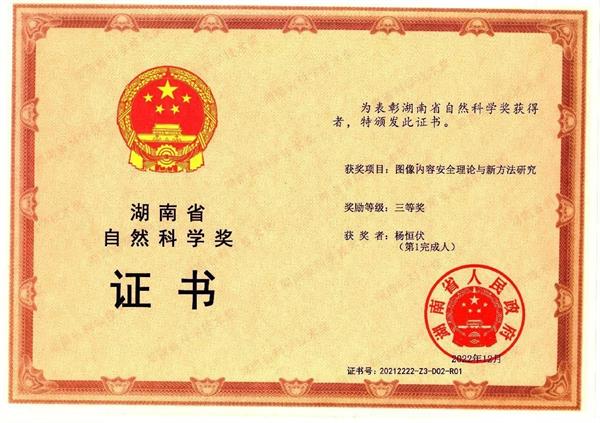 计算机学院杨恒伏教授的成果荣获省自然科学三等奖