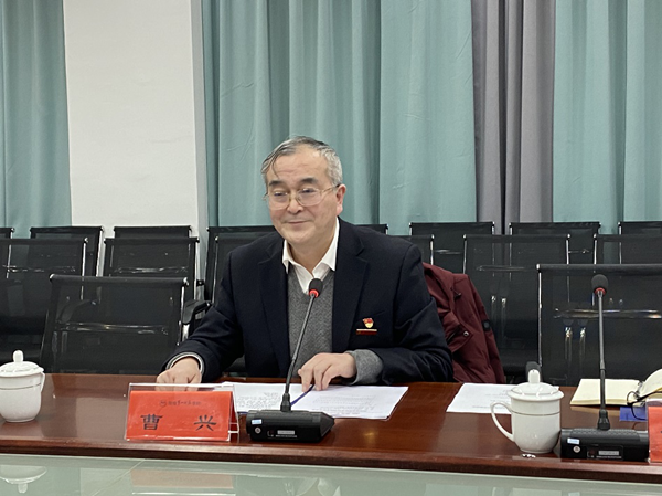 曹兴向客人介绍了beat365学科建设思路及学报、文学与新闻传播学院的建设情况与发展规划。
