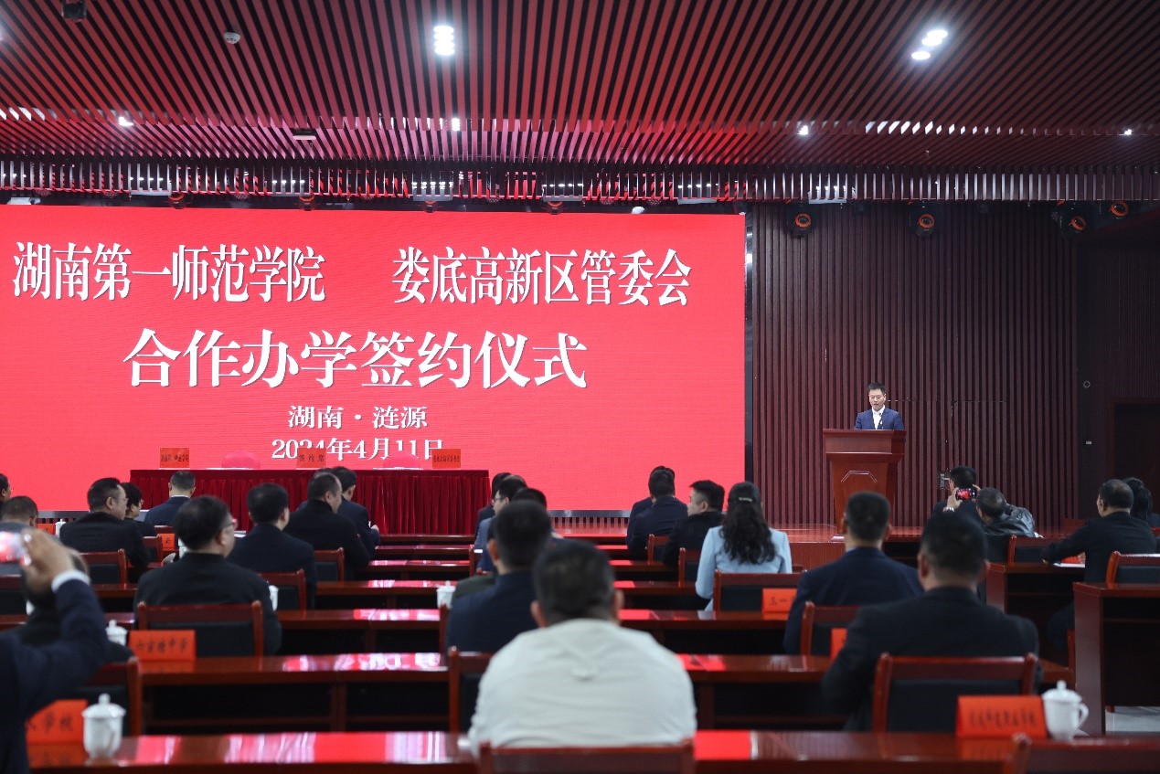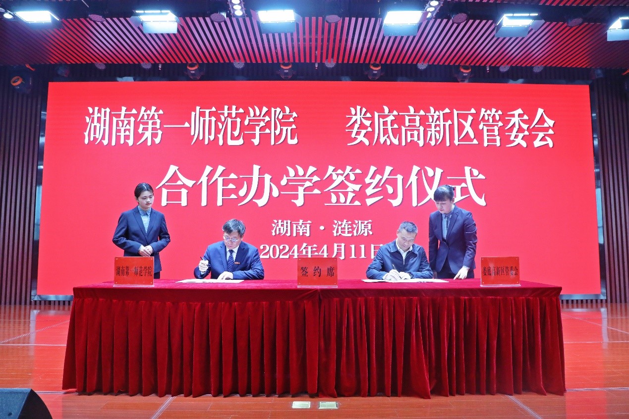 4月11日上午,beat365与娄底高新区管委会就合作举办娄底高新区小学在涟源市涟商总部举行合作办学签约仪式。校党委副书记、校长胡穗,校党委委员、副校长蒋蓉,涟源市委副书记、市长兼娄底高新区党工委书记邓伟谋出席签约仪式。