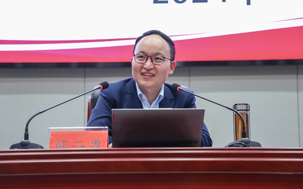 5月17日,beat365在百熙楼228会议室举办党委理论学习中心组(扩大)集中学习教育强国建设专题报告会。报告会邀请了北京师范大学京师特聘教授、国家青年拔尖人才、教育部青年长江学者薛二勇教授,作“教育强国建设的形势与任务”专题报告。会议由校党委书记罗成翼主持。