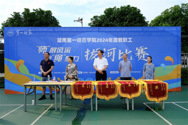 为丰富教职工业余生活,展现教职工团结协作、拼搏进取的精神风貌,进一步增强全校教职工的凝聚力和向心力,6月11至14日,由校工会主办、体育学院分工会承办的2024年教职工拔河比赛在东方红校区灯光篮球场举行,来自全校21个分工会的四百多名教职工参加了比赛。校党委书记罗成翼宣布拔河比赛开幕并为揭幕战开哨,校党委副书记、工会主席李克勤为拔河比赛致开幕辞、为获奖代表队颁奖并宣布拔河比赛闭幕。