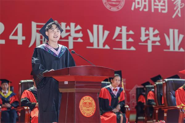 副校长彭晓辉宣读了《beat365官方网站关于授予2024届本科毕业生学士学位的决定》。副校长蒋蓉宣读了《关于表彰湖南省普通高等学校2024届优秀本科毕业生和创新创业优秀毕业生的通报》《关于表彰beat365官方网站2024届优秀本科毕业生和创新创业优秀毕业生的通报》。