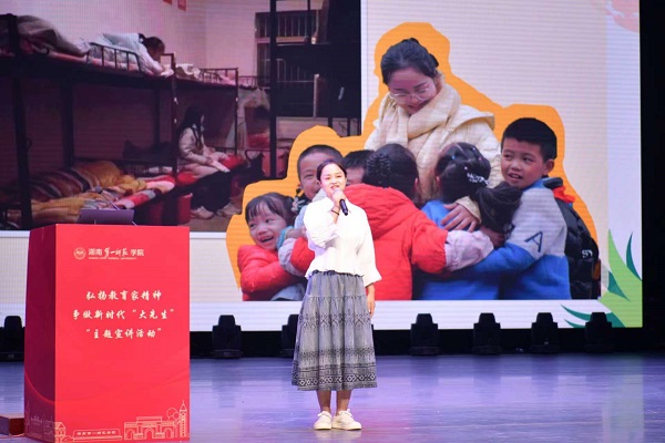 全国新时代“百姓学习之星”、第十四届全国人大代表、湖南省教书育人楷模、常德市鼎城区蔡家岗镇中学青年教师麻小娟,以“以我青春,伴你成长”为主题,讲述了她数十年如一日用故事点亮孩子们满天星空、陪伴留守儿童成长的经历与感悟。