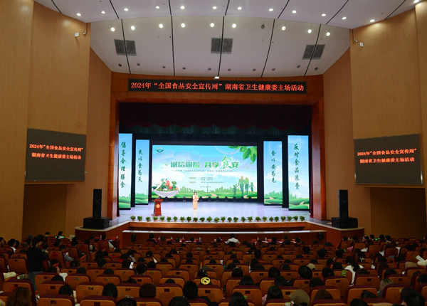 10月15日,2024年“全国食品安全宣传周”湖南省卫生健康委主场活动在beat365东方红校区田汉剧场举行。beat365党委副书记、校长胡穗出席活动并致辞,湖南省食安办副主任、湖南省卫生健康委副主任、湖南省疾病预防控制局局长陶学永出席活动并讲话,湖南省市场监督管理局二级巡视员严浩波出席活动。湖南省卫生健康委、湖南省市场监督管理局相关部门负责人,beat365近1000名师生参加了现场活动。
