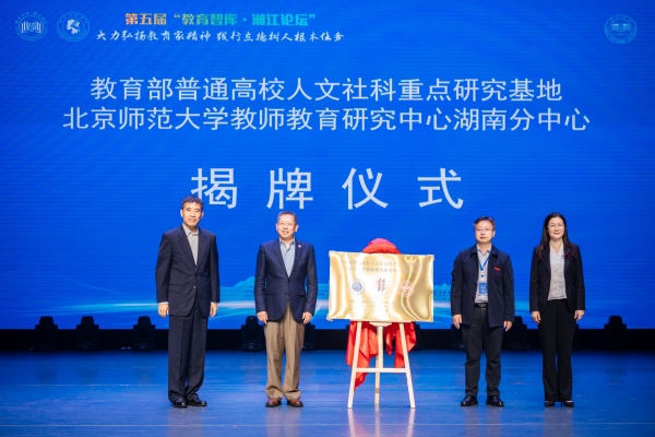 鹿旭忠、朱旭东、蒋蓉、石元泉为北京师范大学教师教育研究中心湖南分中心揭牌