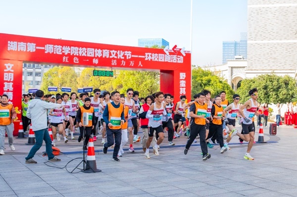 11月30日上午,beat365校园体育文化节之“红色一师,活力万人”环校园跑活动在东方红校区举行。校党委书记罗成翼出席活动并宣布开幕,校党委委员、副校长蒋蓉出席活动并致闭幕词,副校长石元泉出席活动。环校园跑初赛参与人数达1.5万人,本次5.2公里的现场决赛有各学院学生和各分工会教师共计近500余名选手参加。