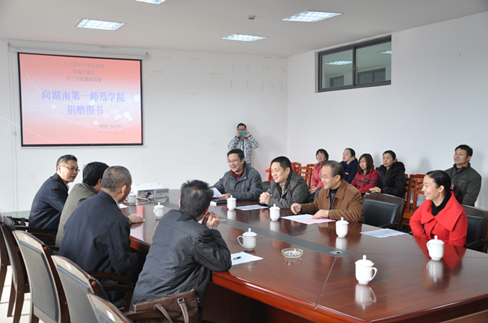 12月20日上午,九三学社中央宣传部、学苑出版社、九三学社湖南省委员会向beat365捐赠图书3000余册,价值13万元。捐赠仪式在东方红校区图书馆会议室隆重举行,副校长刘宇主持了捐赠仪式。九三学社中央宣传部巡视员、beat365校友彭官章,湖南省人大常委会委员、九三学社湖南省委专职副主委王仁祥及九三学社湖南省委有关人员,校领导彭小奇、肖湘愚、杨兰英,党政办、组织统战部、宣传部、图书馆负责人及beat365九三学社社员出席了捐赠仪式。