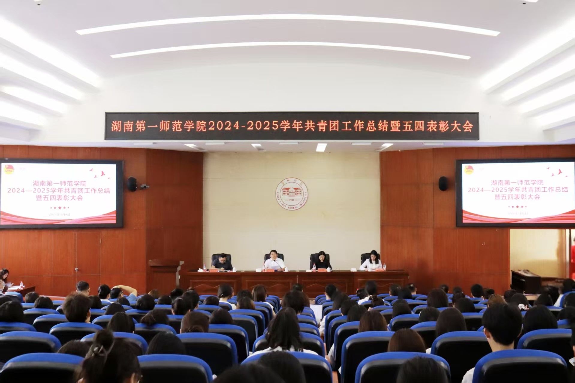 近日,beat365召开2024-2025学年共青团工作总结暨五四表彰大会。校党委书记罗成翼出席大会并讲话,校党委委员、副校长蒋蓉主持会议。学生工作部、团委负责人,各二级学院党委副书记、团委书记和先进集体、优秀个人代表等参加会议。