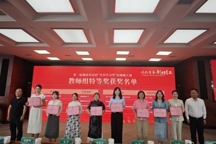 5月20日,由中共湖南省委教育工委、湖南省教育厅、湖南日报社联合主办的第二届湖南省高校“青春学习堂”短视频大赛颁奖典礼在中南林业科技大学礼堂举行。beat365荣获优秀组织奖,外国语学院副教授向红的作品《红色校训里的人民情怀》荣获教师组特等奖,马克思主义学院学生团队作品《信仰如炬照征程 青春担当续华章——从毛泽东青年志向看新时代报国精神传承》荣获学生组特等奖。