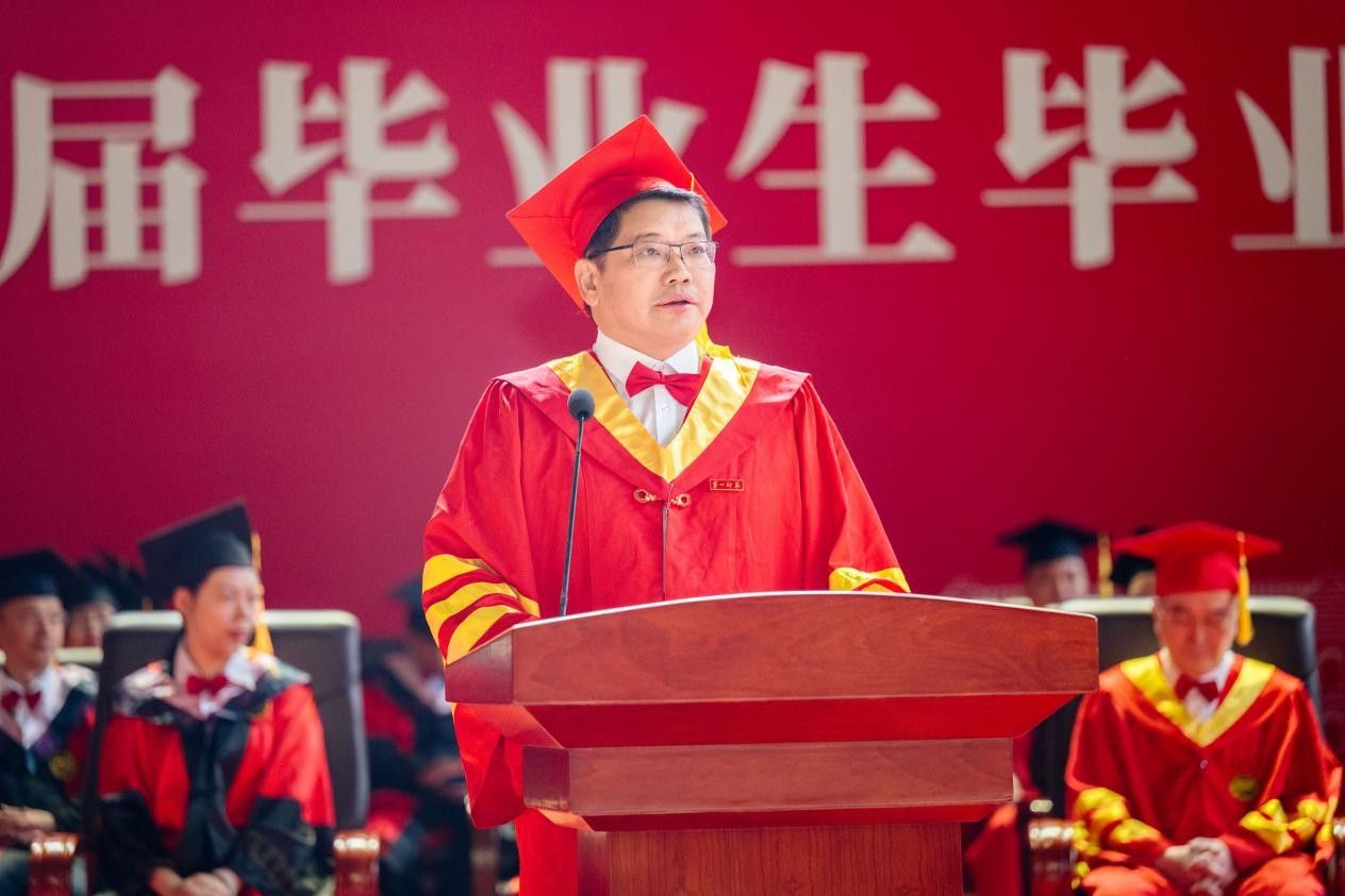 骊歌唱响,逐梦远航。今天,我们在此隆重聚会,举行2025届毕业典礼暨学位授予仪式。在此,我谨代表校党委、行政和全校师生员工,向即将踏上新征程、奔赴新未来的4686名毕业生,表示最热烈的祝贺和最美好的祝愿!同时,也向为你们成长成才付出辛劳的老师们、家长们,致以衷心的感谢和崇高的敬意!