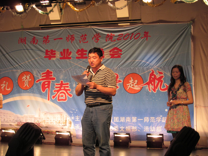 晚会在器乐合奏《喜洋洋》音乐声中拉开了序幕。紧接着,李院长代表学院党委、行政对全院2010届毕业生发表了热情洋溢的致辞,他首先对同学们顺利完成学业表示祝贺,同学们即将离开学校,走向人生的又一个重要驿站,为此,李院长对全体毕业生寄予殷切期望。