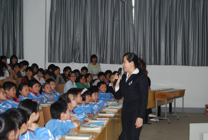 为了积极有效地落实好我院小学语文教师的培养目标,加强学生对小学语文课堂教学实践的直观感受,也让我院教师进一步了解小学语文教学实际,切实加强小学语文教师培养的课堂教学与小学语文教学实践的对接,4月27日下午,由我院文史系主办的小学语文骨干教师示范课观摩暨研讨活动在东方红校区科技楼B栋110教室隆重举行。彭小奇院长、教务处领导、文史系全体教师、各系教学法教师、文史系校外学生辅导员及文史系2008级语文教育专业学生共300余人参加了观摩和研讨活动。