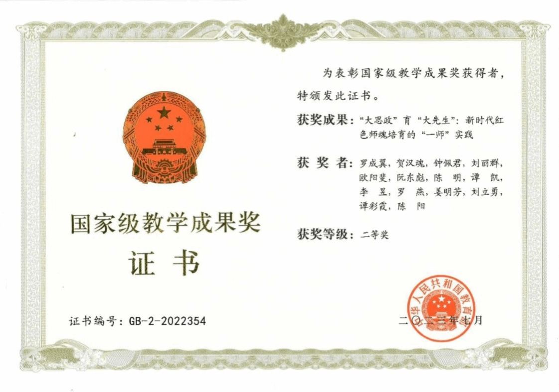 秉持“大思政”育人理念,厚植铸魂育人根基。立足学校独特的红色历史底蕴,聚焦“培养什么人、如何培养人”这一根本问题,以“大思政”为育人理念,以“红色血脉”为育人载体,挖掘红色校史,提炼红色元素,走出了以“大思政”育“大先生”、以“红色血脉”铸“红色师魂”的创新之路。“大思政”育“大先生”的综合育人改革成效显著,先后获得湖南省教育教学成果奖一等奖和国家级教学成果奖二等奖,并入选湖南哲学社会科学跨学科育人“十大案例”奖。