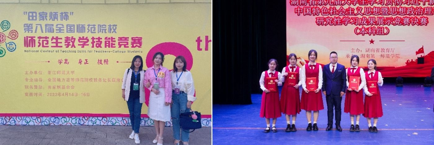学生基础扎实。近年来,学生先后斩获国家级、省级奖励200余项。多人获评中国大学生“自强之星”等国家级、省级荣誉称号;《欲栽大木从兹起,星火燎原铸师魂》《重走总书记湖南足迹 “潇湘蕴 红土魂 马栏潮”》《重走青年毛泽东游学路 争做报国强国栋梁材》等学生作品在全国大学生讲思政课公开课展示活动中分别斩获国家级一、二、三等奖等奖项;“三下乡”团队获评全国大中专学生暑期“三下乡”社会实践优秀团队、教育部语言文字应用管理司“推普助力乡村振兴”社会实践团队奖;在“田家炳杯”全国师范院校师范生教学技能竞赛决赛中获全国二等奖;多次在湖南省大学生思政课研究性学习成果展示竞赛决赛中获特等奖、一等奖。