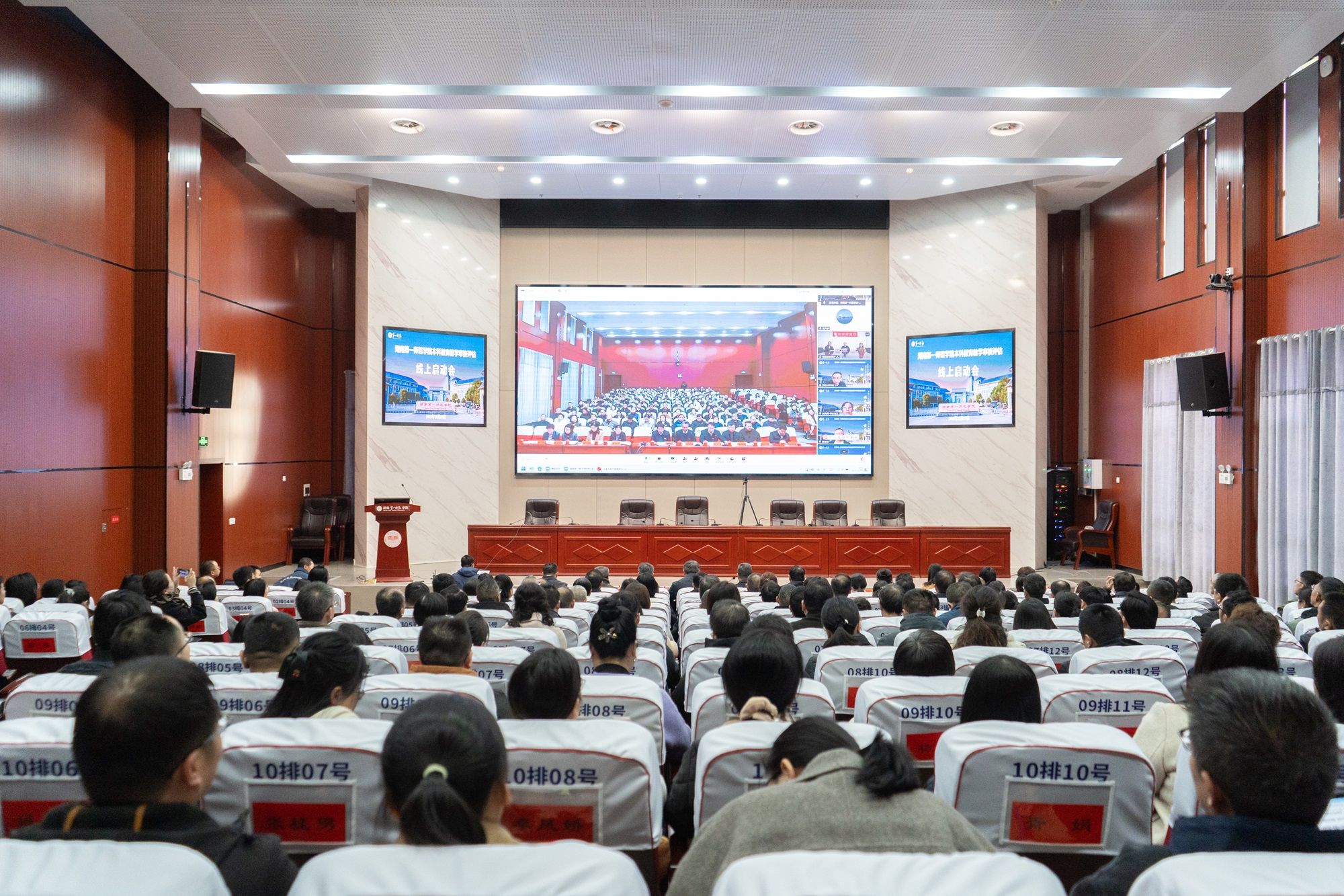 据悉,根据教育部教育教学评估中心、省教育厅工作部署安排,beat365于2025年11月19日—12月5日正式接受教育部本科教育教学审核评估线上评估。专家组将结合审读材料、线上听课看课、调阅试卷材料、访谈座谈等方式,全面考察学校本科教育教学工作,凝练深层次问题和亮点,形成入校考察问题清单以及特色亮点清单。