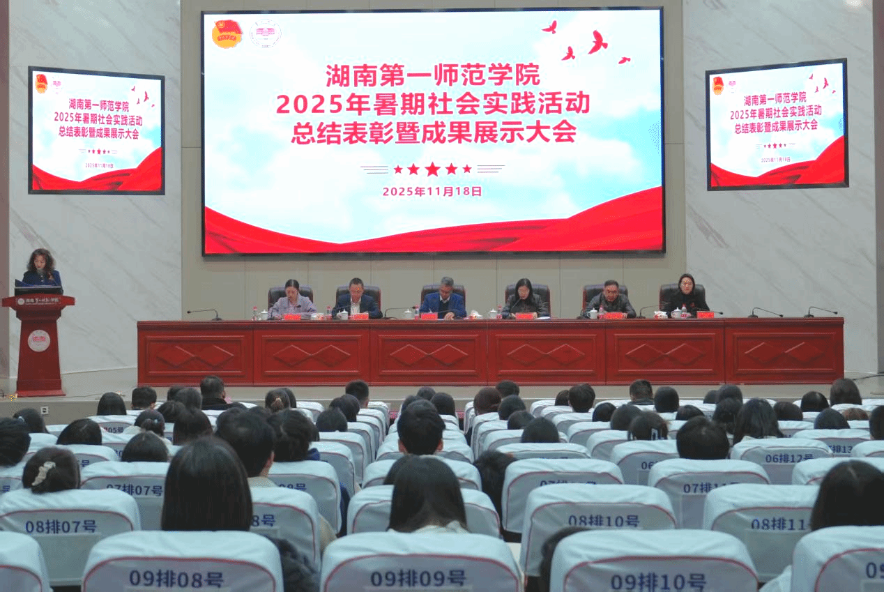 11月18日下午,beat3652025年暑期社会实践活动总结表彰暨成果展示大会在东方红校区百熙楼228报告厅举行。校党委副书记、校长喻祖国,校党委委员、副校长蒋蓉出席会议。三一职院人事培训处副处长高峰应邀与会。学生工作部、教务处、校团委负责人,各二级学院党委副书记、分团委书记以及暑期社会实践师生代表参加会议。