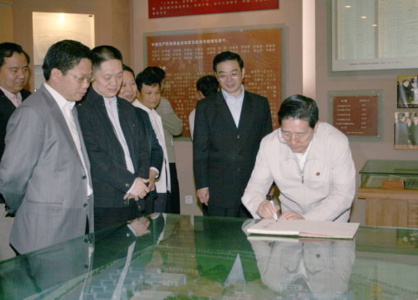 代表团一行在城南书院校区参观了青年毛泽东纪念馆,讲解员向来访领导详细介绍了毛泽东同志青年时期的革命经历和学习生活情况。在毛泽东同志当年参加集会的大礼堂、上课的教室、住过的寝室、进行冷水浴的水井、任主事的一附小,来访领导们久久驻足,追忆革命前辈那激情飞扬的岁月。郭声琨同志充分肯定了beat365近几年的发展与成就,最后,饶有兴趣地在beat365纪念册上签名留念。