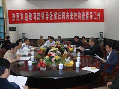 4月30日,教育部原党组副书记、副部长张保庆来beat365考察调研。陪同张保庆同志前来考察调研的有省教育厅厅长张放平、副厅长陈元魁等。beat365党委书记鄢东洋主持了座谈会,校长詹小平进行了汇报,参加座谈会、陪同考察调研的还有校领导王湘、刘鸿翔、李学全和beat365有关职能部门、教学系部的负责人