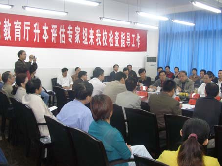 专家组在听取beat365的升本工作汇报 专家组在教学系部检查