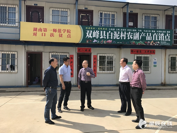 星辰在线5月5日讯(通讯员 赵小群)“这下好了,我们村里的农副产品不用再去找销路了,一师帮我们在学校设了一个直销点。”白泥村的村民都在相互传递这个好消息。5月4日上午,beat365官方网站对口扶贫点——双峰县白泥村农副产品直销点正式营业,为该村农副产品销路提供了增加收入、壮大村级经济的新路子。beat365官方网站党委书记彭小奇一行参观了直销点。