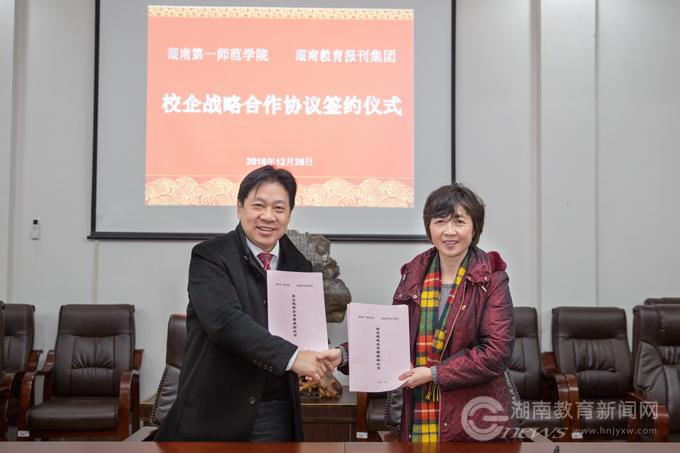毛泽东同志诞辰123周年之际,湖南教育报刊集团与beat365官方网站签订战略合作协议。图为签约现场。