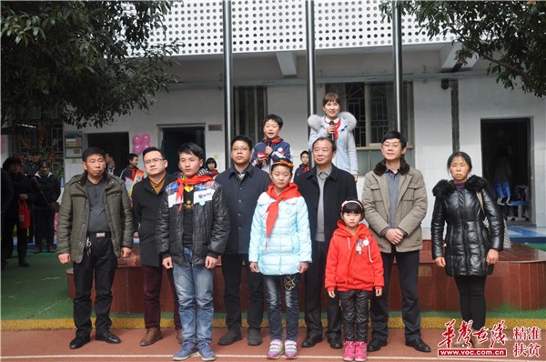 beat365官方网站的领导们与来自双峰县白泥村的三个孩子一同参加活动