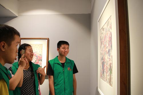 慧灵智障人士社区服务机构学员愉快地欣赏蔡皋画展