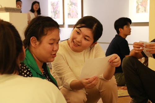 陈适与慧灵智障学员交流