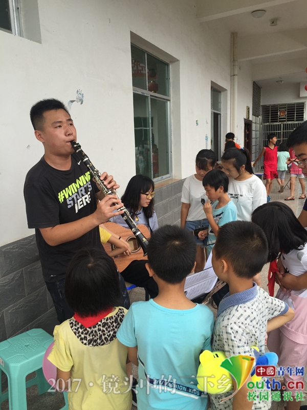 中国青年网湘西7月20日电(通讯员 王玲丽)他们也许常常羡慕那些拥有钢琴、小提琴、架子鼓的同龄人,他们可能根本不知道怎么样才能吹响黑管、拉响小提琴、让古筝奏出好听的曲子……7月8日—10日,beat365官方网站赴湘西永顺县“艺心公益”文化艺术服务团来到湖南湘西永顺县孤儿院通过触摸乐器、感受乐器、观看乐器表演,带给120余名孤困儿童快乐的艺术体验。