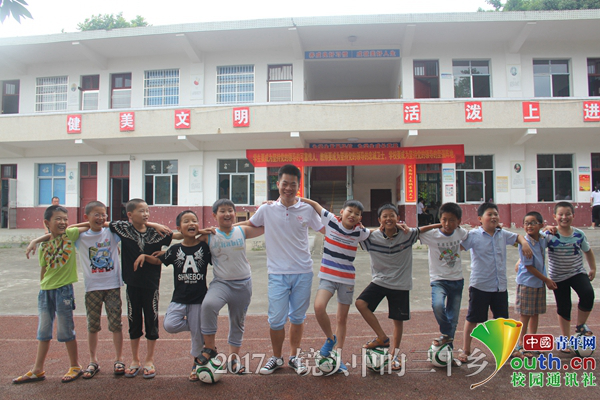 支教老师何时来和高年级班爱踢足球的孩子们。中国青年网通讯员 彭燕辉 摄