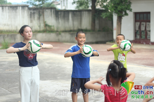 中国青年网长沙7月21日电(通讯员 陈阳 谭仪 肖依婷)“一二三四五六七八,二二三四五六七八……”7月15日上午,宁乡市夏铎铺镇长龙新村龙潭小学的孩子们手中高举绿白的足球,跟着老师一起学做足球操,阳光闪烁在舞动的足球上,明媚着孩子们脸上的笑容。
