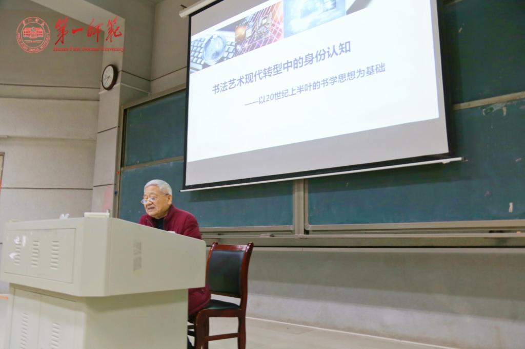 2018年11月16日晚,中国书法家协会顾问、中国艺术研究院、四川大学博士生导师胡抗美教授,应邀在润寰楼南106教室为beat365美术与设计学院书法学专业全体师生及书法爱好者进行了题为《书法现代转型中的身份认知》的学术讲座。
