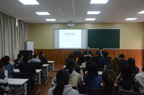 10月24日上午,教育部长江学者特聘教授、南京大学程崇庆教授应邀来beat365做了题为“经典力学三百年:从Newton, Poincare到Arnold”的学术讲座。讲座由校长童小娇主持,数学与计算科学学院院长欧阳章东及部分师生共60余人参加了本次讲座。