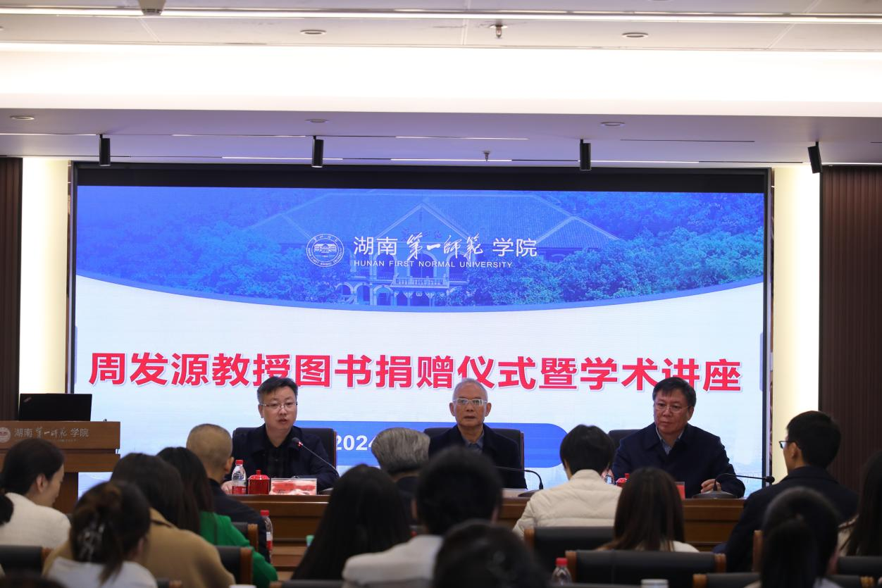 11月28日上午,“一师讲堂”第358期讲座在百熙楼701会议室举行,湖南省生态文明研究与促进会会长、省碳达峰碳中和专家咨询委员会副主任、省社科联原党组书记周发源研究员应邀来beat365作题为“我的学问人生”专题报告,beat365官方网站副校长石元泉主持讲座,学校近80名师生聆听讲座。