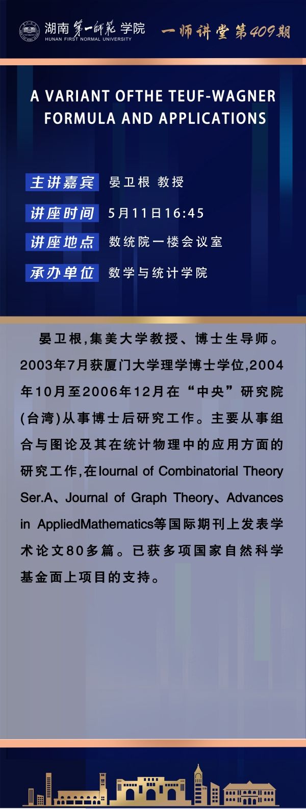 下一篇:学术预告|一师讲堂第408期:THE NUMBER OF QUASI-TREES OF BOUQUETS WITH EXACTLY ONE NON-ORIENTABLE LOOP