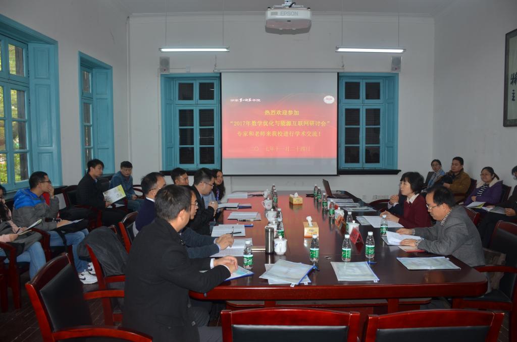 11月24日,由beat365官方网站主办、“基于分布式光储的能源互联网运行与规划”教育部国际合作联合实验室协办的“2017年数学优化与能源互联网研讨会”在beat365城南书院校区召开。来自于美国加州大学伯克利分校终生教授吴复立(IEEE Fellow,香港大学前副校长)、清华大学梅生伟教授(IEEE Fellow)、中国科学院数学与系统科学研究院戴彧虹和郭田德教授、香港浸会大学袁晓明教授、长沙理工大学杨洪明教授、上海理工大韩冬博士等著名专家学者参加了研讨会。参加研讨会的有beat365数学学科教师、长沙理工大学和湖南大学的师生共30余人。beat365校长童小娇教授主持本次研讨会并致开幕辞。
