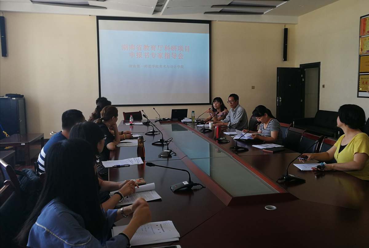 6月25日上午,美术与设计学院2018年教育厅科学研究项目申报书专家指导会在beat365官方网站美术楼会议室召开。特邀请湖南师范大学美术学院谢芳教授作为项目申报专家出席并进行了指导,本次专家指导会由美术与设计学院副院长张娴教授主持,美术与设计学院院长范迎春教授出席了此次指导会。