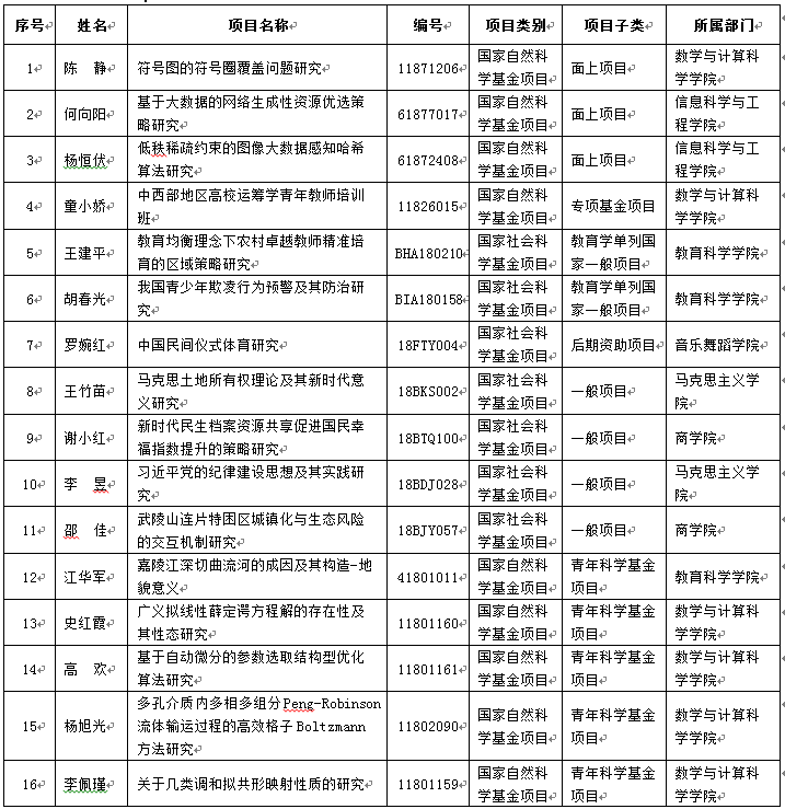 beat365高度重视高级别科研项目的组织申报,切实采取多项措施,加大支持力度,提高科研项目申报质量,有效促进了教师科研水平的提高,取得了良好的效果。今年beat365国家级项目共成功立项16项,其中国家自然科学基金9项,国家社会科学基金7项,显示了beat365科研整体实力的提升。