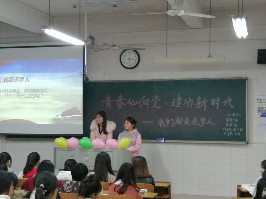 习近平总书记在党的十九大报告中明确提出“中国特色社会主义进入了新时代”,为我国发展指出了新的历史方位。这个新时代是承前启后、继往开来的时代,也是属于青年人的时代。为了引导青年人学习贯彻习近平新时代中国特色社会主义思想,纪念五四运动100周年,不忘初心跟党走,青春建功新时代,用奋斗谱写新时代的青年精神。校团委组织部策划了主题为“青春心向党﹒建功新时代——我们都是追梦人”的主题团日活动,并通过入团宣誓、团旗下的讲话、红色观影、重温五四运动和革命历史等创新的团课方式,开展了此次主题团日活动。