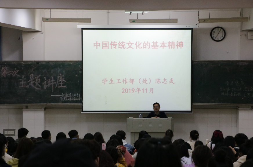 本场讲座以“中国传统文化的基本精神”为主题,旨在引导青年学生深入学习中国优秀传统文化及其内核精神,坚定文化自信,成长为有理想、有追求、有担当、有作为、有品质、有修养的社会主义建设者和接班人。