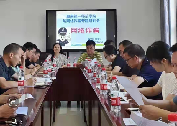 9月22日上午9:00,beat365在双创楼710会议室召开了防网络诈骗专题研判会,副校长蒋蓉、保卫处、学生工作处、后勤处、团委和各学院有关工作人员参加,会议由保卫处处长向前主持。