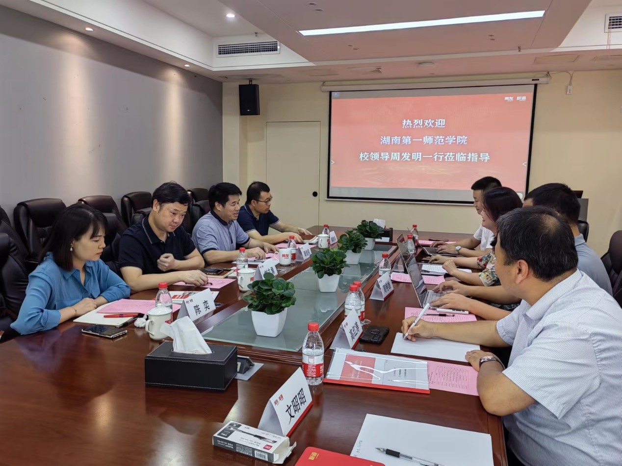 为贯彻落实教育部“高校书记校长访企拓岗促就业”专项行动,深入了解行业发展趋势,实现校企人才供需精准对接。7月6日下午,党委委员、副校长周发明和计算机学院负责人一行赴湖南用友软件有限公司、新道科技股份有限公司开展访企拓岗活动。湖南用友软件有限公司云及中端事业部业务总监吴姣、新道科技股份有限公司助理总裁罗姣等热情接待了周发明一行。