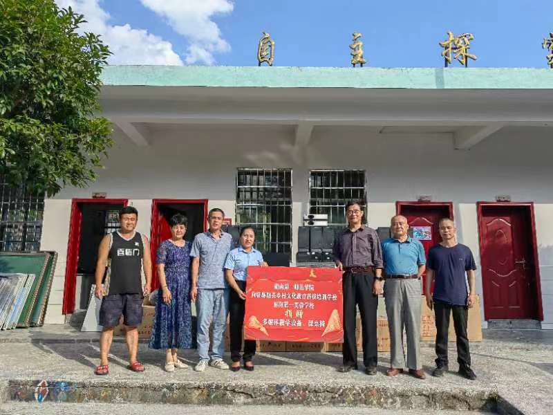 调研结束后,江正云一行代表beat365向麻阳第一芙蓉学校、beat365官方网站驻麻阳县乡村文化科技培训学校捐赠台式电脑、投影仪、多媒体讲台、图书室卡位等物资设备。