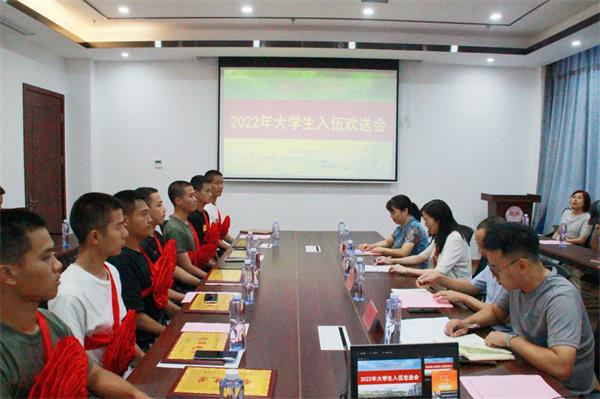 欢送会上,与会领导为入伍新兵佩戴大红花、赠送“参军光荣”牌匾并发放纪念品。数学与统计学院2022届毕业生吴宇诚代表新兵发言。