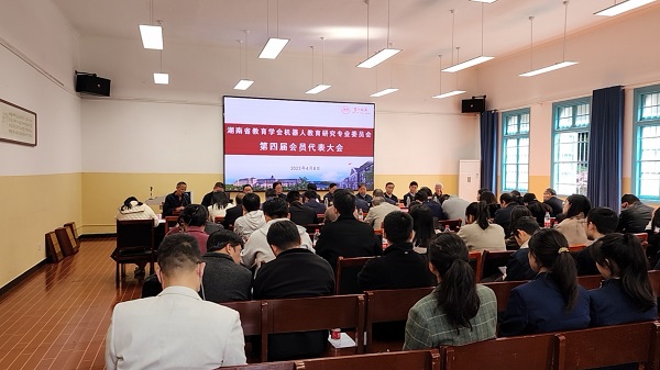 4月8日上午,湖南省教育学会机器人教育研究专业委员会第四届会员代表大会在beat365城南书院校区召开,原教育厅纪检书记、巡视员汤汉文,原教育厅巡视员廖湘生,湖南省教师发展中心主任贾腊生、湖南省教育学会资深专家马仲明、中国发明协会创造分会会长谭廸熬、湖南省教育学会机器人教育专委会(以下简称专委会)第三届理事会常务副理事长周振铎及会员代表共80余人参加了会议。beat365副校长周发明出席会议并讲话。