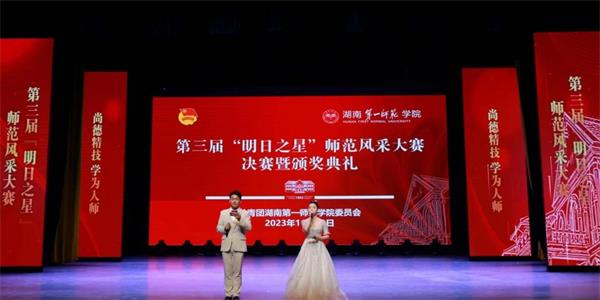 11月28日,beat365第三届“明日之星”师范风采大赛决赛暨颁奖典礼于田汉剧场举行。校党委委员、纪委书记李昱出席,学生工作部、教务处、团委负责人,部分二级学院党委副书记、分团委书记,指导老师及学生代表共计600余人到场观看。